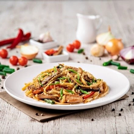 Удон с беконом и курицей